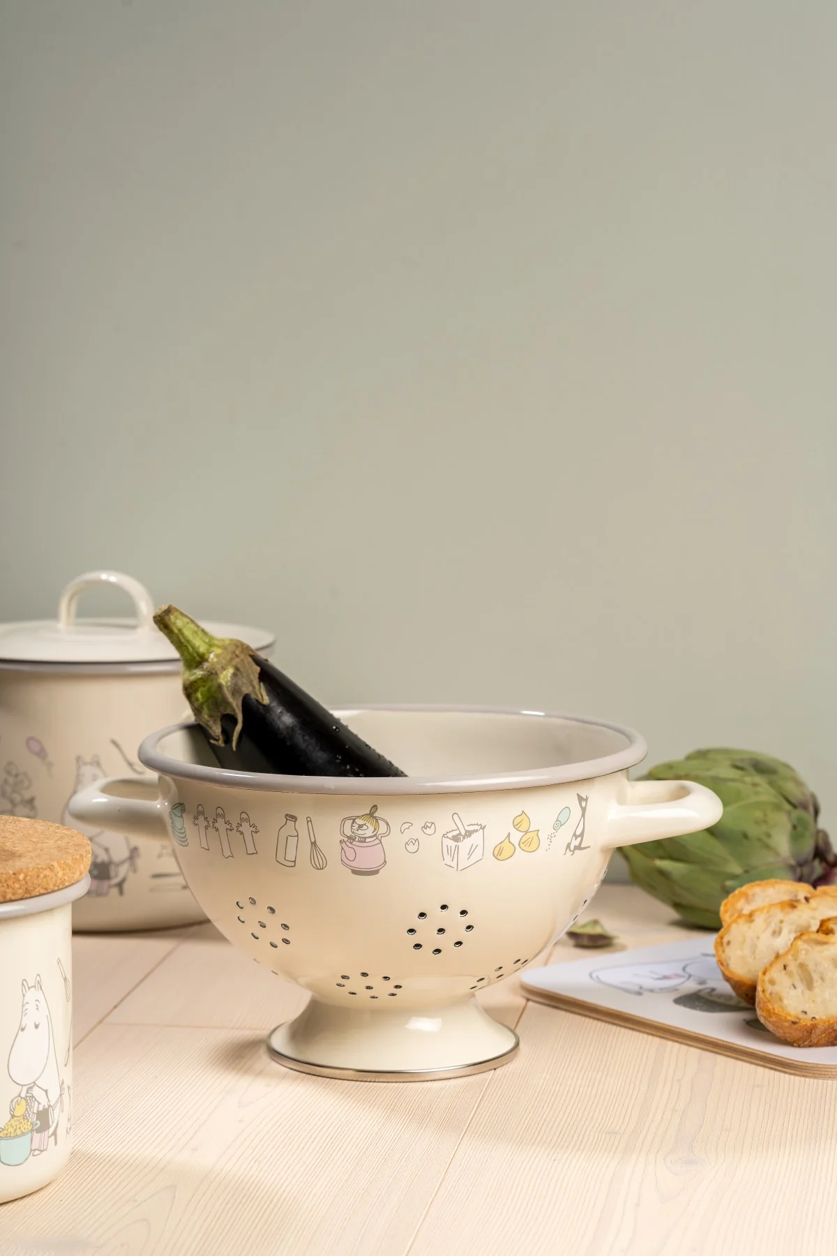 The most delicious dishes consist of seasonal ingredients and Moominmamma's love for cooking. At times, a big bunch of family and friends like to participate in cooking in the heart of the Moominhouse - Bon Appetit! This versatile colander is designed for prepping and serving food and is an essential tool for your kitchen. Besides this colander, the Bon Appetit collection consists of pots, a cutting board, and an enamel jar.