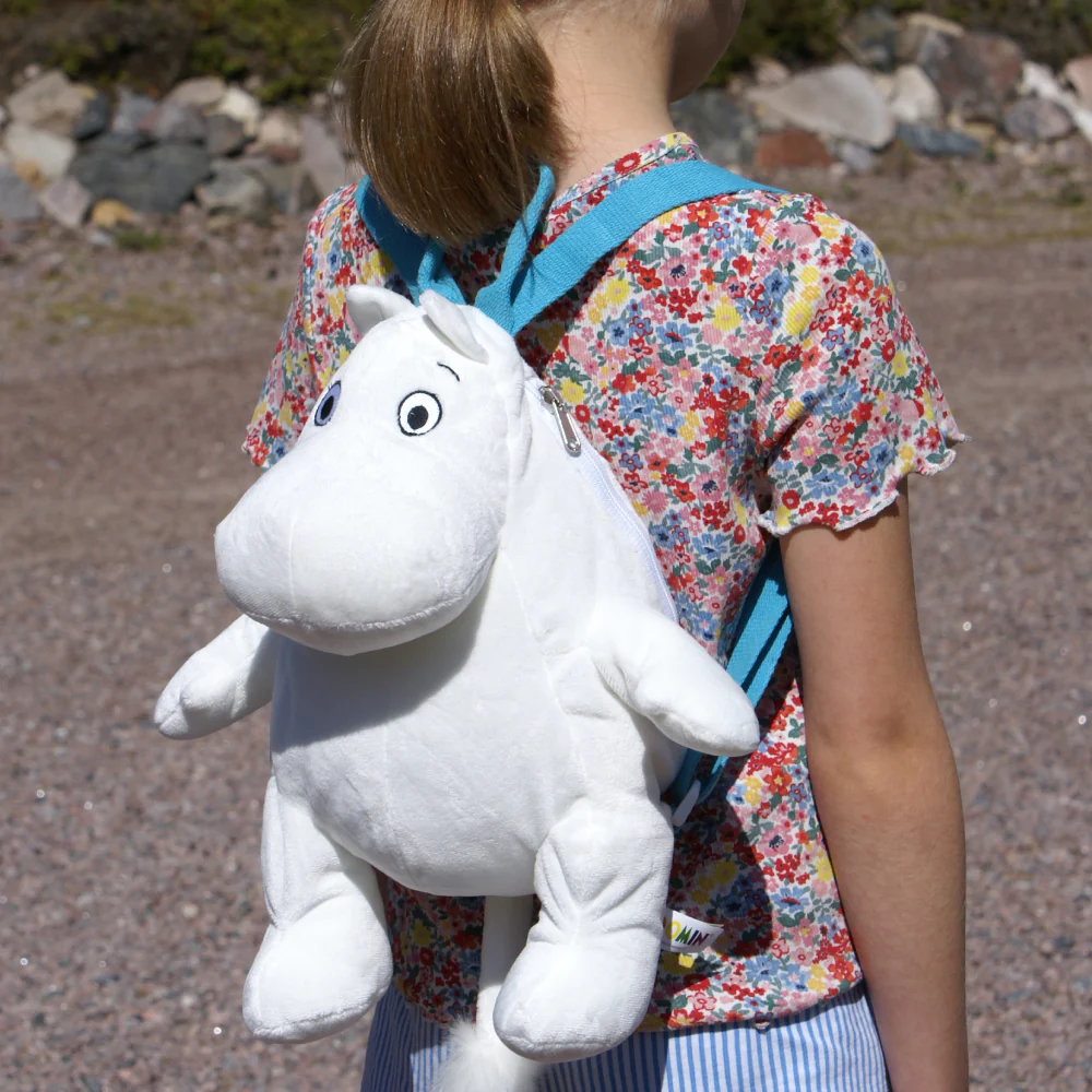 Make your school days instantly more fun with this adorable, soft Moomintroll backpack, which is also a plush toy! Moomintroll is kind, caring and curious, a great lover of nature and a true friend. An ideal gift for fans of classic Moomin books as well as children looking for a soft and cuddly new friend. Size: 13 x 1.3 x 7.5 inches.