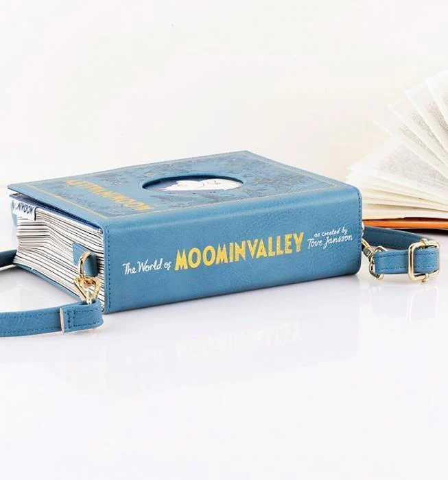 Stunning Moomin Book Bag by Disaster Designs. This fun Moomin bag makes sure you stand out. The design is based on the book: The World of Moominvalley. Made from high quality PVC with a poly-cotton lining. Zip and magnetic closure, zipped inside pocket. Adjustable, detachable shoulder strap and wrist strap. Measurements: 8.3 x 5.9 x 2.4 inches.